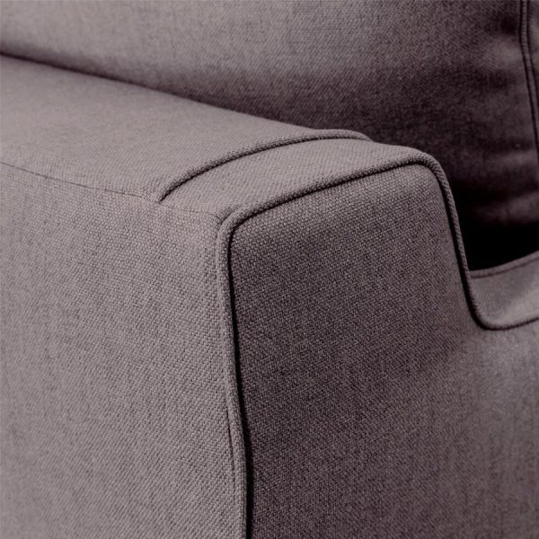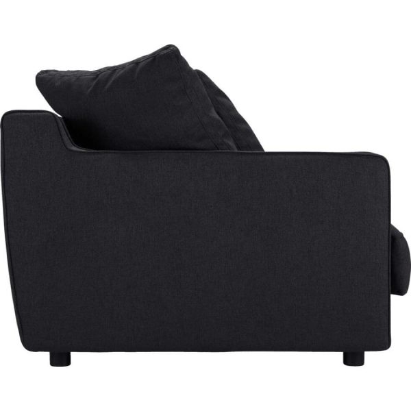 Assise et dossier : Assise en mousse polyuréthane densité 30kg/m3 et couette en fibre polyester. Coussins dossier garnissage plumes d’oies et fibres polyester, 3 coussins de 60x60cm, 2 coussins de 50x50cm.