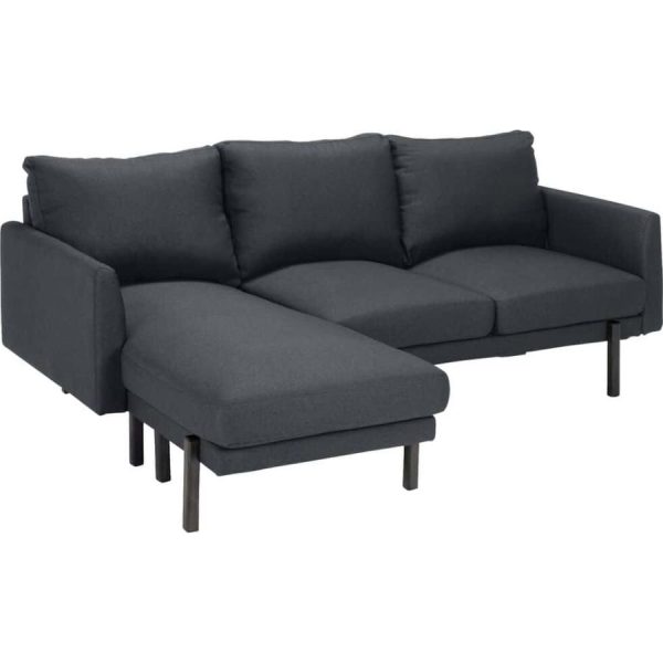Un canapé d’angle idéal pour les petits espaces. Un canapé accueillant au look contemporain. Son piétement en métal noir et ses accoudoirs apportent une note moderne et tendance à la décoration de votre salon. Des coussins confortables pour une excellente qualité d’assise. Son coloris gris restanque apporte une touche citadine et raffinée à votre salon. Un canapé convivial qui vous permet d’optimiser l’espace de votre salon avec une jolie méridienne réversible.