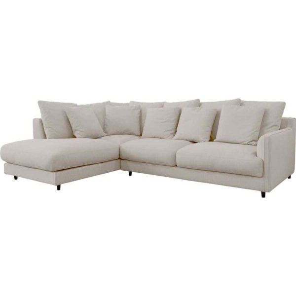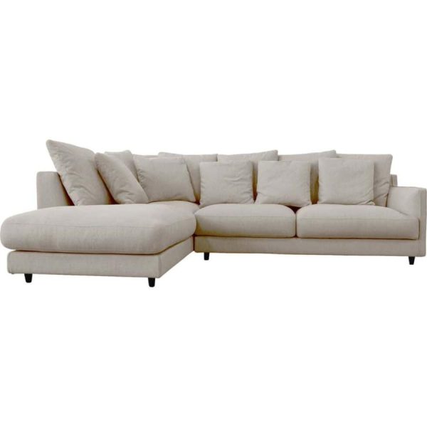 Assise et dossier : mousse polyuréthane densité de 30 kg/m3 et couette en fibre polyester. 7 coussins dossier 60×60: Plumes d’oie et fibre polyester. 4 coussins 50×50: Plumes d’oie et fibre polyester.