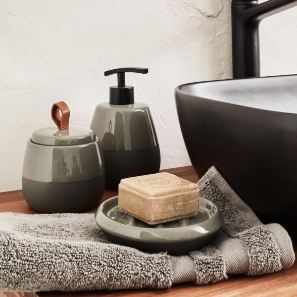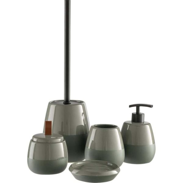 Ce set de salle de bainen grèsapporte du charme à votre pièce. Il allie un design à la fois chic et moderne, de part sa couleur unique vert cèdre et originale, qui saura apporter une touche déco à votre douche. Pratique il est fait pour améliorer votre quotidien avec style. Cet ensemble se compose d’un distributeur de savon,d’un porte-savon, d’un pot à coton, d’un porte brosse à dents et d’une brosse wc pour créer un joli set de salle de bain. La gamme se décline en plusieurs coloris.