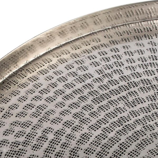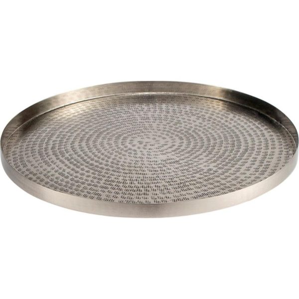 Ce plateau décoratif affiche un diamètre de 51 cm : une belle taille qui lui permet de revêtir plusieurs fonctions. En effet, ce plateau argenté peut servir comme plateau de présentation pour des fruits ou encore des objets déco. Agrémentez-le d’une bougie, d’unlivre, d’un vase et de sa composition florale pour que le tour soit joué. Ce plateau rond affiche alors tout son potentiel. Sous la lumière, il brille doucement et offre une touche lumineuse à la pièce. Ce plateau déco argenté arbore des détails gravés, pensés pour donner de la texture, du relief et du caractère à cette belle pièce.