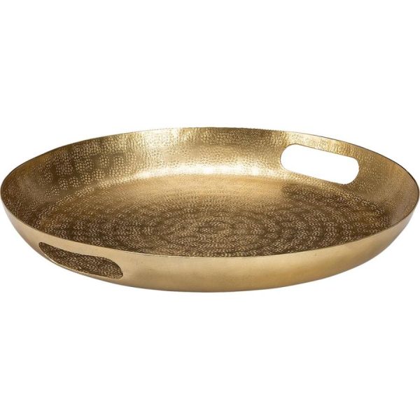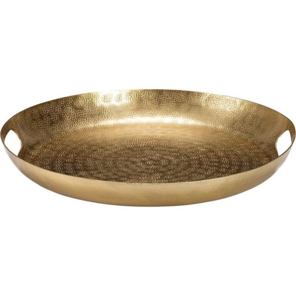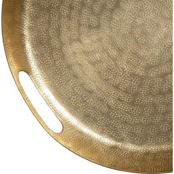 Pour une touche éthniqueet authentique au milieu de votre déco, optez pour ceplateau rond doré. Ses effets martelés lui donnent une touche unique. étant d’une grande taille, il vous sera utile pour l’heure du thé,pour vous apéritifs ou tout simplement en plateau déco.Garnissez-le également de bougies de différentes tailles pour créer une ambiancecosy. Munide poignées, vous pouvez facilement le porter et le déplacer à votre guise.