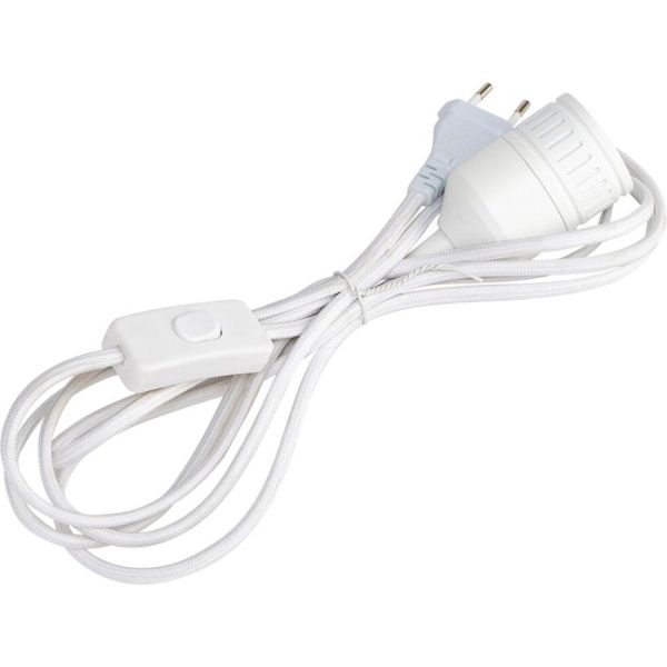Une monture blanche et discrète pour ampoule de culot E27. Son câble est tressé pour un rendu plus esthétique. Un interrupteur vous permet ainsi d’allumer et d’éteindre facilement votre luminaire. Une monture d’une belle longueur de 3 mètres de long qui conviendra parfaitement à une lampe à poser. Elle existe dans un autre coloris.