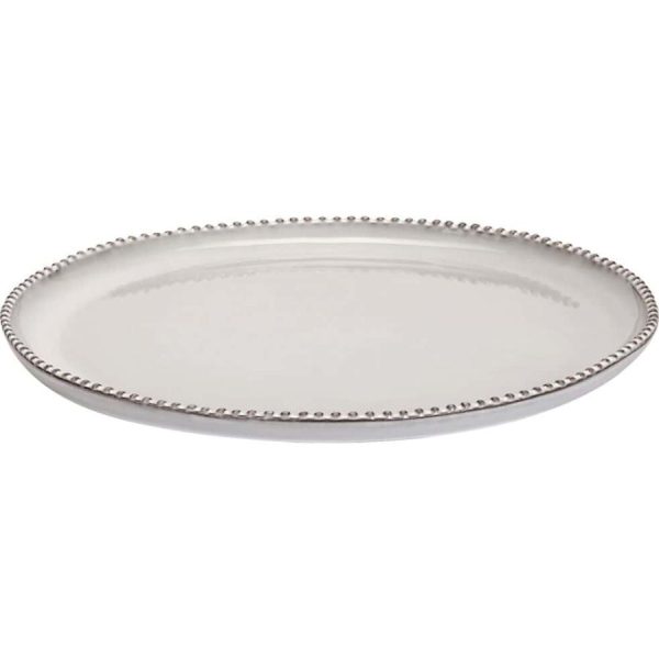L’assiette plate Margot est parfaite pour un usage quotidien. En porcelaine, elle est à la fois raffinée et résistante. En effet, cette céramique cuite à haute température offre une vaisselle solide, ne craignant ni les chocs ni les rayures. Cette grande assiette grise est parfaite pour présenter vos plats. Les couleurs des légumes rôtis sont mis en valeur par la porcelaine, lisse et brillante. Cette assiette plate en porcelaine se distingue par son rebord cranté : de petites perles grises viennent apporter du relief à cette assiette sobre et élégante.