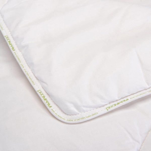 Cette couette chaude, ici en 240×220 cm, possède une enveloppecomposée à 100% de coton. Elle esttraitée contre les acariens grâce à la technologie Proneem. Les actifs utilisés sont d’origine naturelle et sont biodégradables puisqu’ils sont issus d’extrait d’arbre de Margousier. Idéale pour les personnes sujettes aux allergies, elle vous offre la possibilité depasser des nuits en toute tranquillité. Son garnissage en fibres creuses siliconées très courtes qui garantissentune excellente régulation de la température tout en vous assurant d’être bien au chaud au cours de la nuit.
