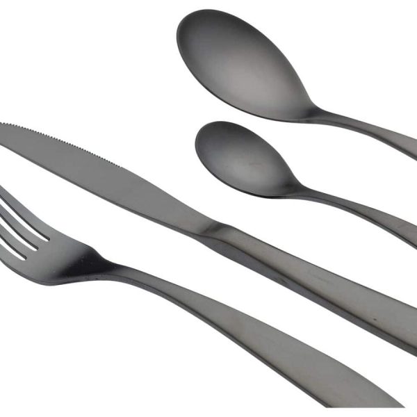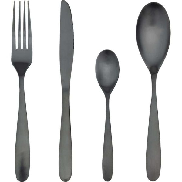 Découvrez cetteménagère de 16 pièces en acier inoxydable noir mat. Munie d’un revêtement en titane, ellearbore une silhouette élancée, ce qui apportera une touche raffinée à votredressage de table. Faits en inox 18%, mis à part pour les couteaux où c’est de l’acier 13%, ces couverts allient esthétismeet praticité, afin de vous accompagner lors de vos repas. Au quotidien ou pour de grandes occasions, elle s’adaptera aisément avec votre vaisselle.