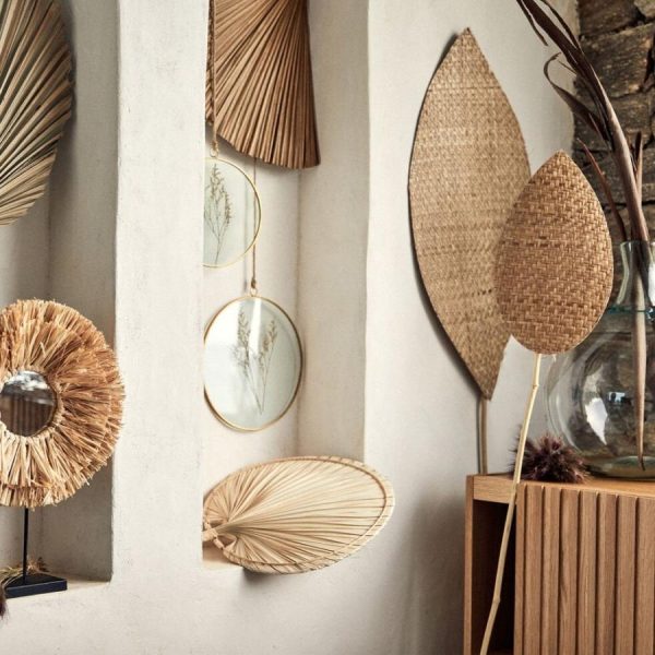 Cette décoration naturellese nomme d’après une petite ville espagnole riche d’Histoire : Huesca. Cette feuille tressée en jonc de mer est inspirée de ses paysages sauvages et arborés. Le jonc de mer et le bambou s’allient pour offrir une décoration naturelleà placer dans un vase ou à suspendre au mur, tel un éventail. Cette grandefeuille décorativeest une décoration murale originale, destinée à donner une touche ethnique à votre intérieur. Le tressage donne du caractère à ce branchage artificiel, fenêtre sur l’Espagne et ses trésors.