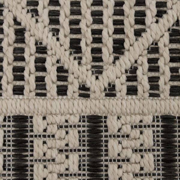 Un très beau tapis en 160x230cm qui présente un rendu identique au sisal, vous pourrez le placer aussi bien à l’intérieur qu’à l’extérieur pour embellir vos sols. Un tapis aux motifs tressés, qui mêlent le beige et le noir pour une véritable élégance ethnique dans un salon par exemple.