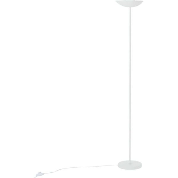 Avec ses lignes discrètes et modernes, le lampadaire Jersey est l’allié parfait d’une décoration harmonieuse. Son pied droit est surmonté d’un dôme renversé, tourné vers le plafond. Ce design minimaliste offre un bel éclairage diffus, idéal pour une ambiance réconfortante dans le salon ou une atmopshère plus studieuse dans le bureau. Cette belle lumière est permise grâce à l’utilisation de deux ampoules en simultané. Ce grand lampadaire à poser est fabriqué en métal blanc : une couleur lumineuse qui convient à toutes les décorations d’intérieur. Pour l’allumer une fois la nuit tombée, actionnez le bouton à l’aide d’une simple pression. Posé au sol, il se pousse du bout du pied pour un intérieur toujours plus fonctionnel.
