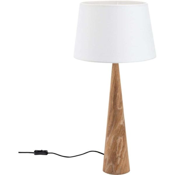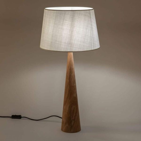 Abat-jour en coton et pied de lampe en acier avec placage bois.