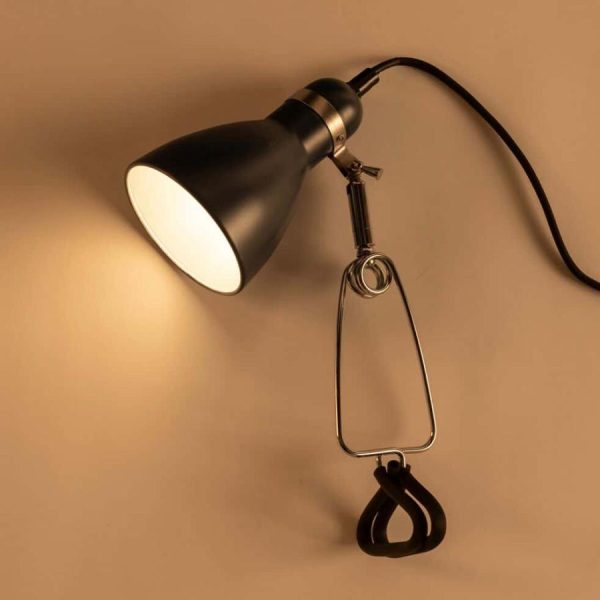 Cette petite lampe de 34 cm de haut s’inscrit dans la tendance des luminaires industriels. Toutefois, elle se distingue par son pied. Contre toute attente, cette lampe d’appoint ne dispose pas d’un pied articulé mais d’un pied en forme de pince. Ce dernier se clippe au meuble de votre choix, comme un bureau, une table de chevet ou encore une bibliothèque. Vous pouvez ensuite orienter la tête de cette lampe en métal dans la direction de votre choix pour un meilleur confort visuel. Nomade, cette lampe à pince se déplace dans toutes les pièces de la maison, selon vos besoins. Tantôt lampe de bureau, tantôt lampe de chevet… Ses visages sont multiples. Dans un coloris bleu foncé, cet éclairage secondaire est également un objet déco pour votre intérieur.