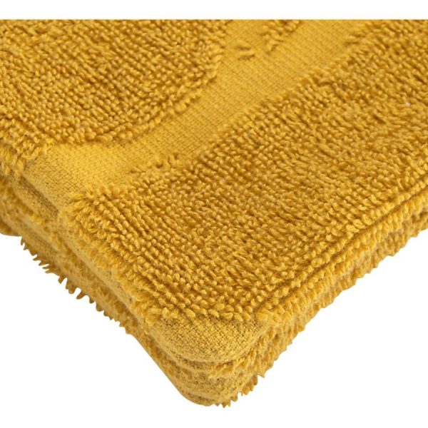 S’enrouler dans cette gamme delinge de toilette,c’est la promesse d’un agréable moment dans sasalle de bainpour prendre soin de soi. Très doucetout en étant très absorbante, elle vous accompagnera au quotidien dès votre sortie de la douche ou du bain. Son colorisjaune argannous rappelle les couleurs vives des épices et nous invite à l’évasion le temps de sa toilette matinale ou le soir après une longue journée. Lagamme Ryad, a étéconfectionnée au Portugalet est composée à100% de coton.