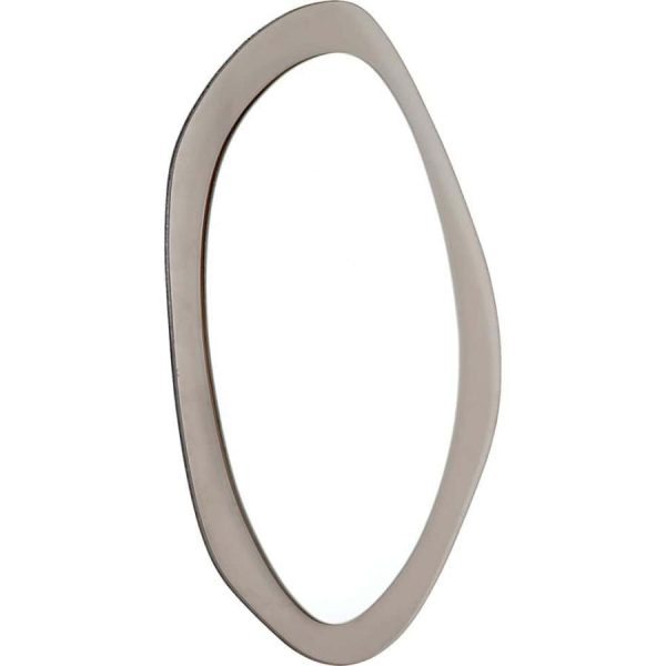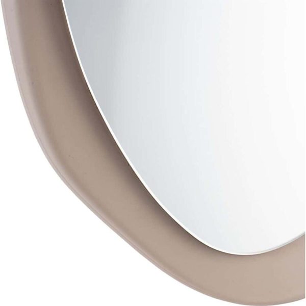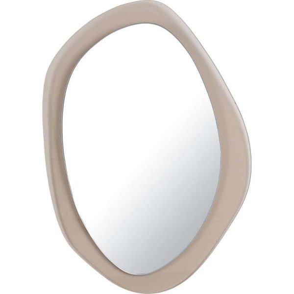 Le miroir mural Acoira présente une forme abstraite, très tendance dans tous les intérieurs. Ce type de miroir est plus connu sous le nom de miroir galet ou de miroir flaque. En effet, il présente une forme organique rappelant certains éléments naturels. Les courbes de ce miroir organique sont douces et ne suivent aucune règle. Dès lors, ce miroir abstrait dégage une sérénité, renforcée par son cadre rose poudré. De taille moyenne, 35x50cm, ce miroir décoratif peut se suspendre comme décoration murale ou bien se déposer, par exemple sur une coiffeuse ou un bord de cheminée.