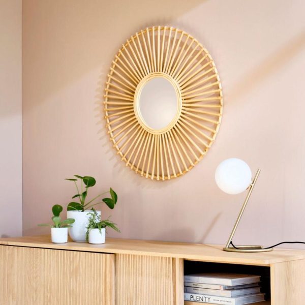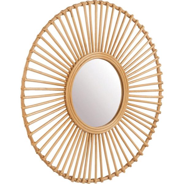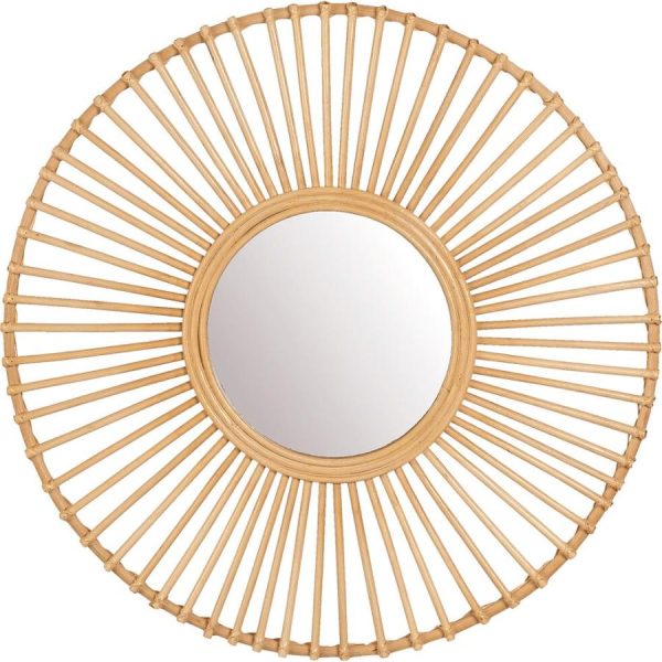 Le miroir Clara surprend par la multitude de personnalités qu’il peut revêtir. En effet, le travail du rotin résulte en un miroir soleil, particulièrement lumineux. Il est rétro et colonial : son matériau naturel évoque les voyages d’antan, où les explorateurs partaient à la rencontre de civilisations étrangères, à la recherche de soleil et d’exotisme. Paradoxalement, ce miroir soleil est aussi une déco tendance qui s’intègre aisément dans toutes les atmosphères. Associé à d’autres miroirs dans un style similaire, habillez votre tête de lit ou encore le dessus de votre canapé.