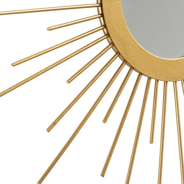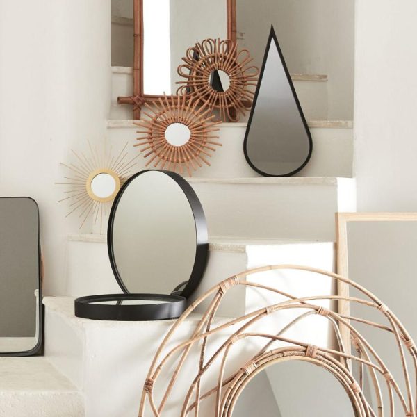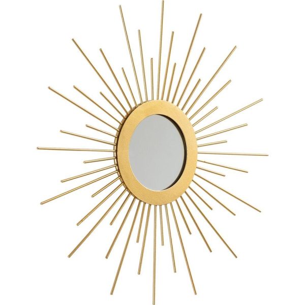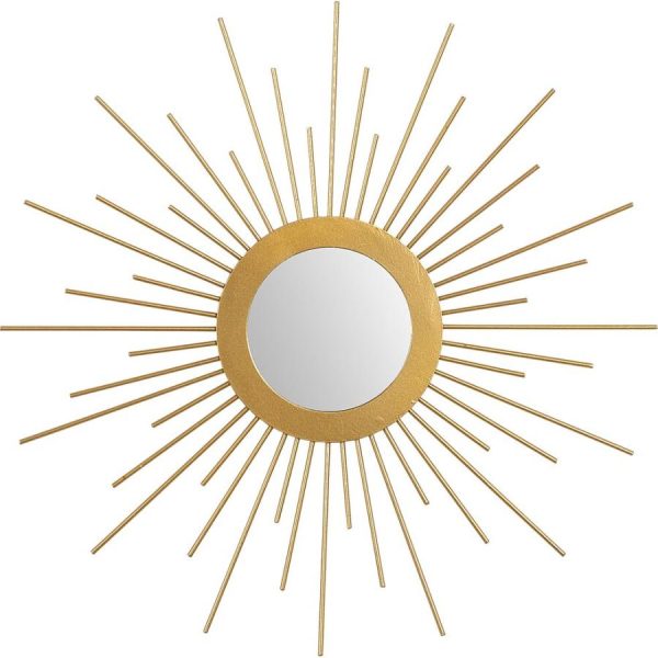Ce miroir soleil doré valse entre les époques et les styles. Apparu au début du XXème siècle, le miroir soleil atteint son paroxysmedans les années 50 avant de tomber dans l’oubli. Il fait aujourd’hui son grand retour dans nos intérieurs, tel un objet déco d’antan à l’allure chinée. Traditionnellement en rotin, cepetit miroir rond est ici revisité avec du métal doré et brillantpourcorrespondre àunedécoration contemporaine. Le miroirest cerclé par de multiples tiges imitant les rayons du soleil. Trois tailles s’alternent régulièrement pour obtenir un jeude volume, à l’effet légèrement trompe l’oeil. Le miroir Elio habillera avec bon ton et cachet un mur nu et créera chez vous une source de lumière, essentiel au bien-être.