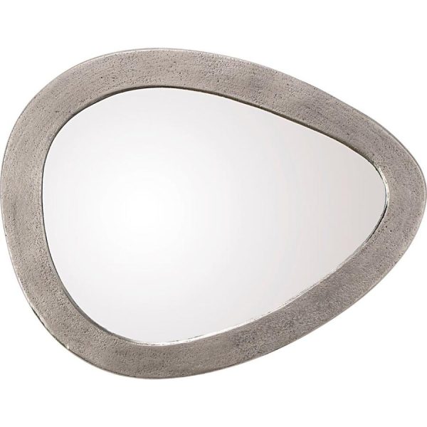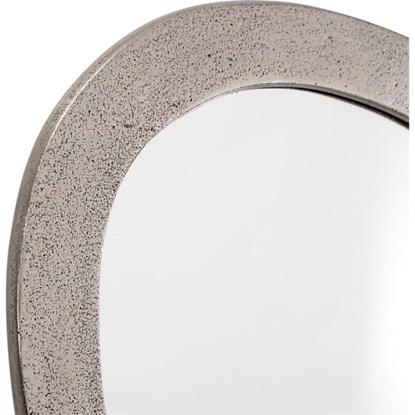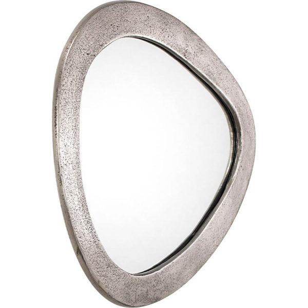 Voze est un miroir organique, c’est-à-dire qu’il ne présente pas une forme géométrique classique mais des courbes abstraites. Les contours adoucissent cette décoration murale en métal. Un design original qui permet d’embellir nos intérieurs tout en leur offrant un côté plus chaleureux. En effet, ce miroir organique argenté évoque des éléments naturels comme une flaque d’eau ou une forme végétale. Ce miroir argenté est cerclé d’aluminium, ce qui lui donne cette nuance brillante. Le métal semble buriné, un travail de la matière qui apporte de la texture et du caractère à ce miroir déco.