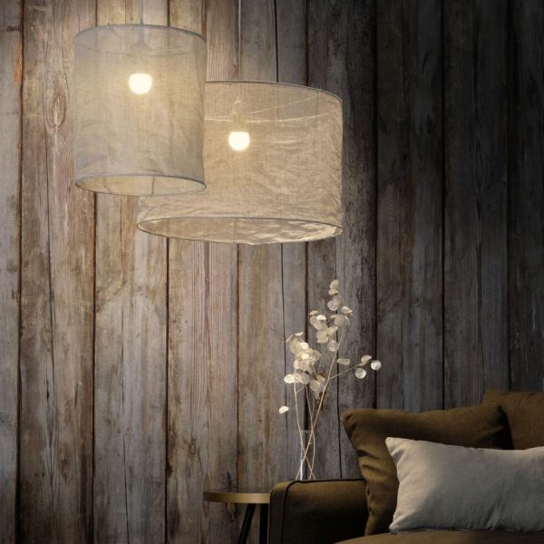 Décoration Suspension Et Plafonnier | Alinea Domus Suspension En Chêne Et Tissu Blanc