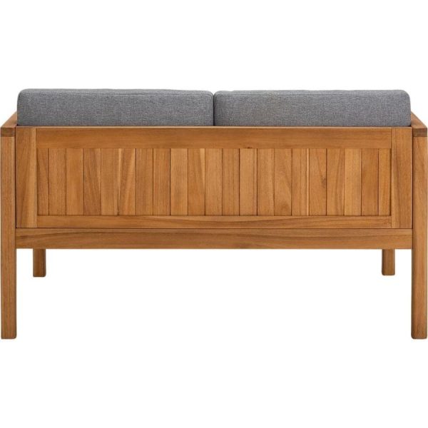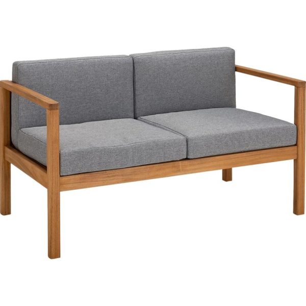 composition : Canapé 2 places : Structure en acacia finition huilé. Coussin de couleur gris en polyester 230gr de 7,5cm d’épaisseur. Poids maxi supporté: 2 x 140kg