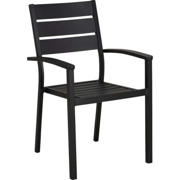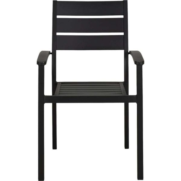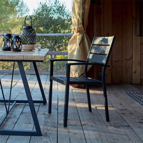 élégance et esthétisme sont les maîtres-mots de ce fauteuil de jardin noir en aluminium. Placé sur votre terrasse autour de votre table d’extérieur ou à proximité de votre piscine, ce fauteuil vous offrira tout le confort dont vous avez besoin pour manger, lire ou vous reposer grâce à ses deux accoudoirs.