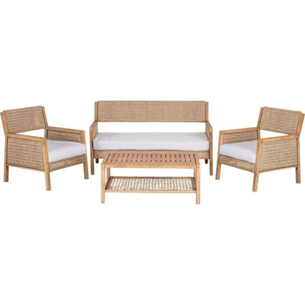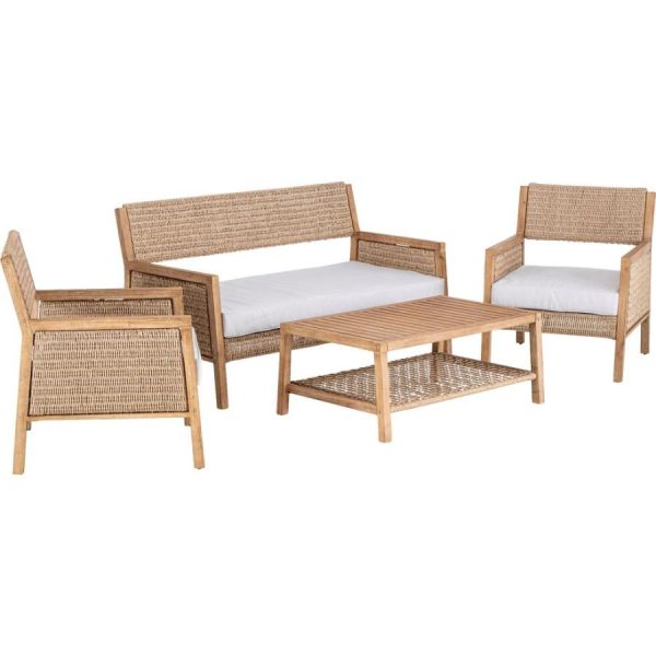 Salon de jardin en acaciafinition huilé et tressage en osier