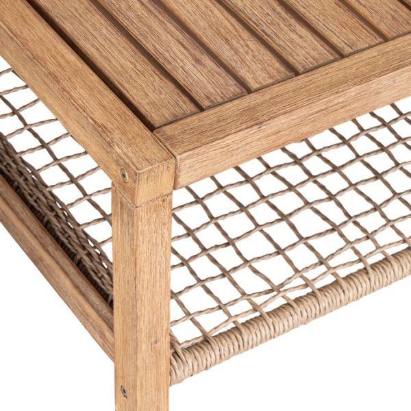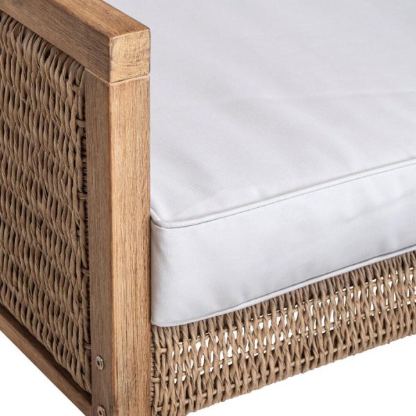 Lisboa est un salon de jardin en bois, modulable, et très original. Comme une véritable invitation au farniente, il offre un grand confort et se fondera parfaitement dans un coin de verdure. Il se compose d’un canapé de jardin, de deux fauteuils et d’une table basse. Vous pouvez ainsi le moduler selon vos envies et en fonction de la configuration désirée. En acacia huilé certifié FSC, le dossier du canapé et des sièges est conçu en osier tressé, une touche authentique qui met à l’honneur ici les matières naturelles grâce à cette subtile combinaison qui lui donne un aspect texturé. Sous la table, vous trouverez un détail filet qui fait toute l’originalité de ce mobilier de jardin.