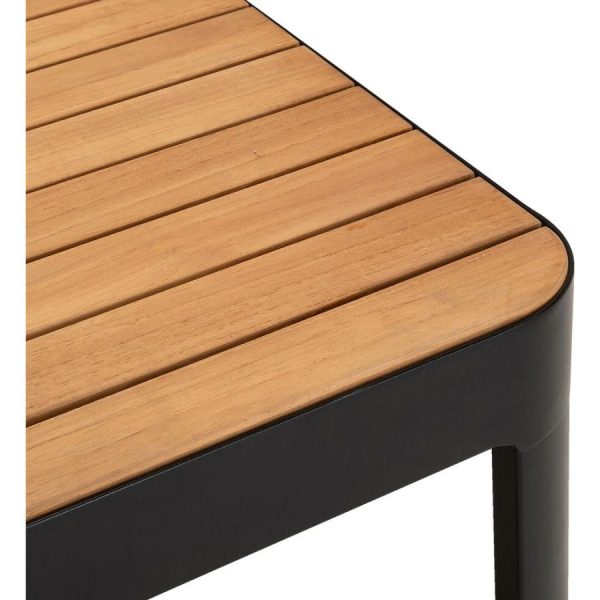 Structure en aluminium et plateau en teck FSC, finition peinture époxy noir.