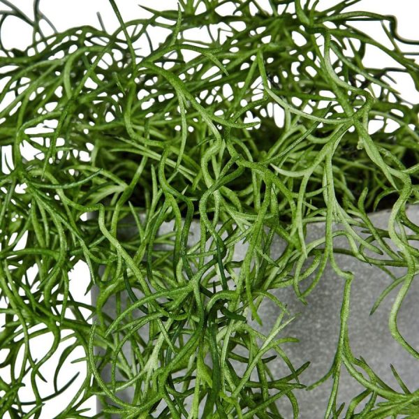 Prenez de la hauteur avec cette plante tombante à suspendre à votre plafond ou bien en haut d’un meuble. Sa cascade de tiges vertes tombe harmonieusement et donne à votre intérieur un côté jungle du plus bel effet. Cette plante artificielle est inspirée du rhipsalis, un cactus aux multiples ramifications originaire des forêts vierges d’Amérique du Sud. Un objet déco rafraichissant qui ne nécessite aucun entretien.