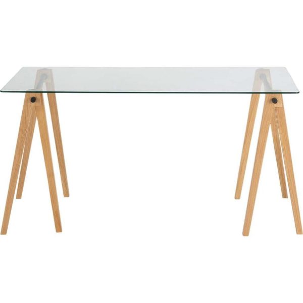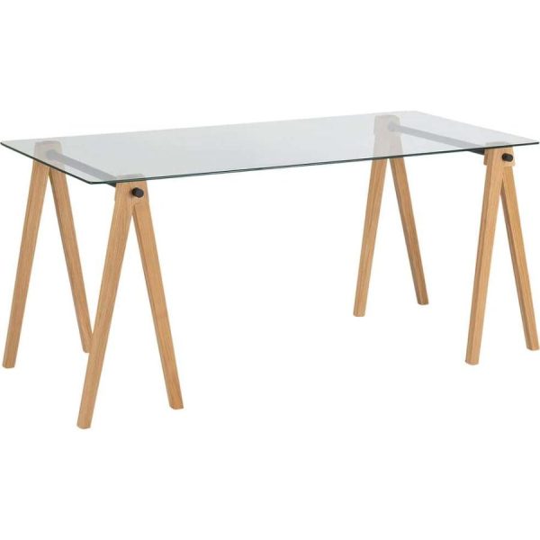 Mobilier Bureau | Alinea Puncia Bureau En Bois Et Verre Trempé Transparent