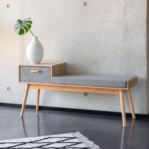 Le bancd’entrée Alfred est un banc plein d’élégance et de nostalgie. Comme un petit meuble venu d’une autre époque, il s’impose pourtant sans difficulté dans la modernité.Sons style s’impose et annonce le ton dès l’entrée. Ce banc d’entrée est charmant, audacieux et stylé. Son coussin d’assise confortable permet de se chausser et de se déchausser tranquillement. Le petit tiroir peut faire office de rangement pour les parapluies, foulards et autres objets que l’on souhaite avoir à portée de main avant de sortir.
